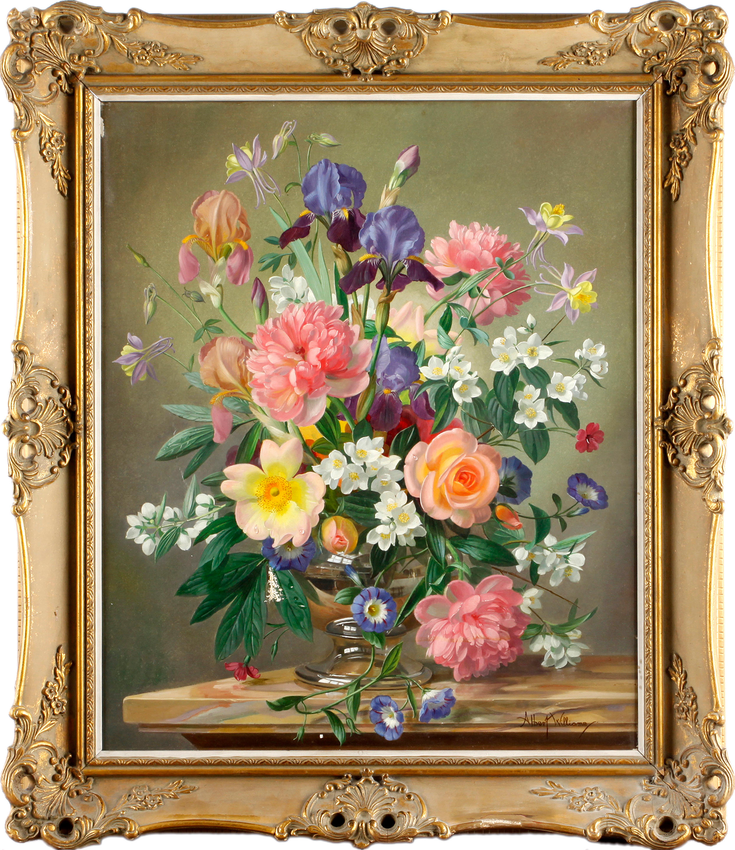 Albert Williams Lose In Unserem Preisarchiv Lotsearch from auction.gorringes.co.uk This picture, june flowers, was the most challenging so far but i'm so pleased with it as i have painted this one for my son and. The pink colored roses fill out the silver vase to the point where they litter the ground surrounding it. A summer floral arrangement art print by albert williams. Peonies and mixed flowers by albert williams. View spring flowers by albert williams on artnet. Check out our royal albert flower selection for the very best in unique or custom, handmade pieces from our tea cups & sets shops. Limited time sale easy return. Rare art by albert williams floral bouquet framed print 22.5 h x 27 w.